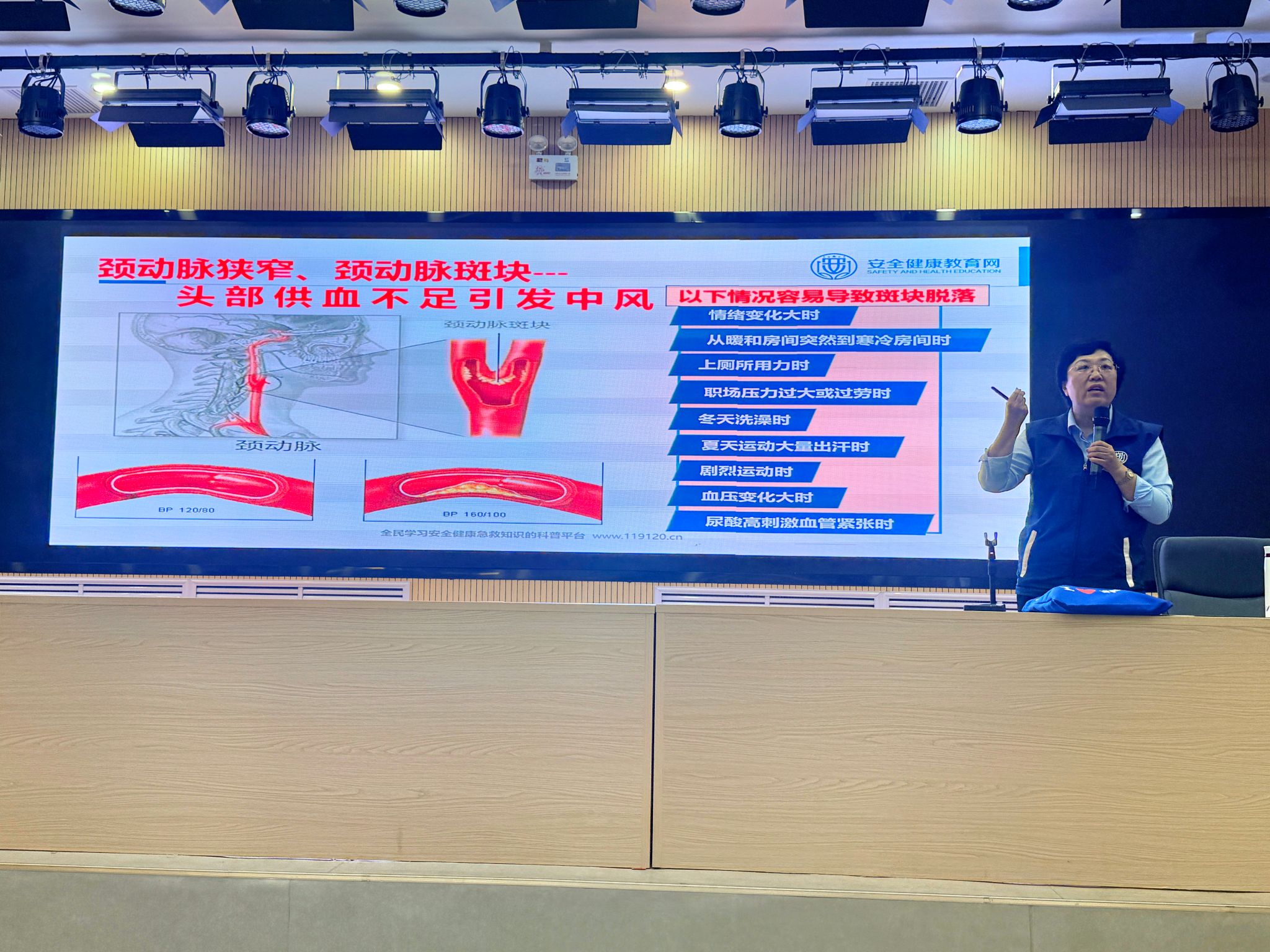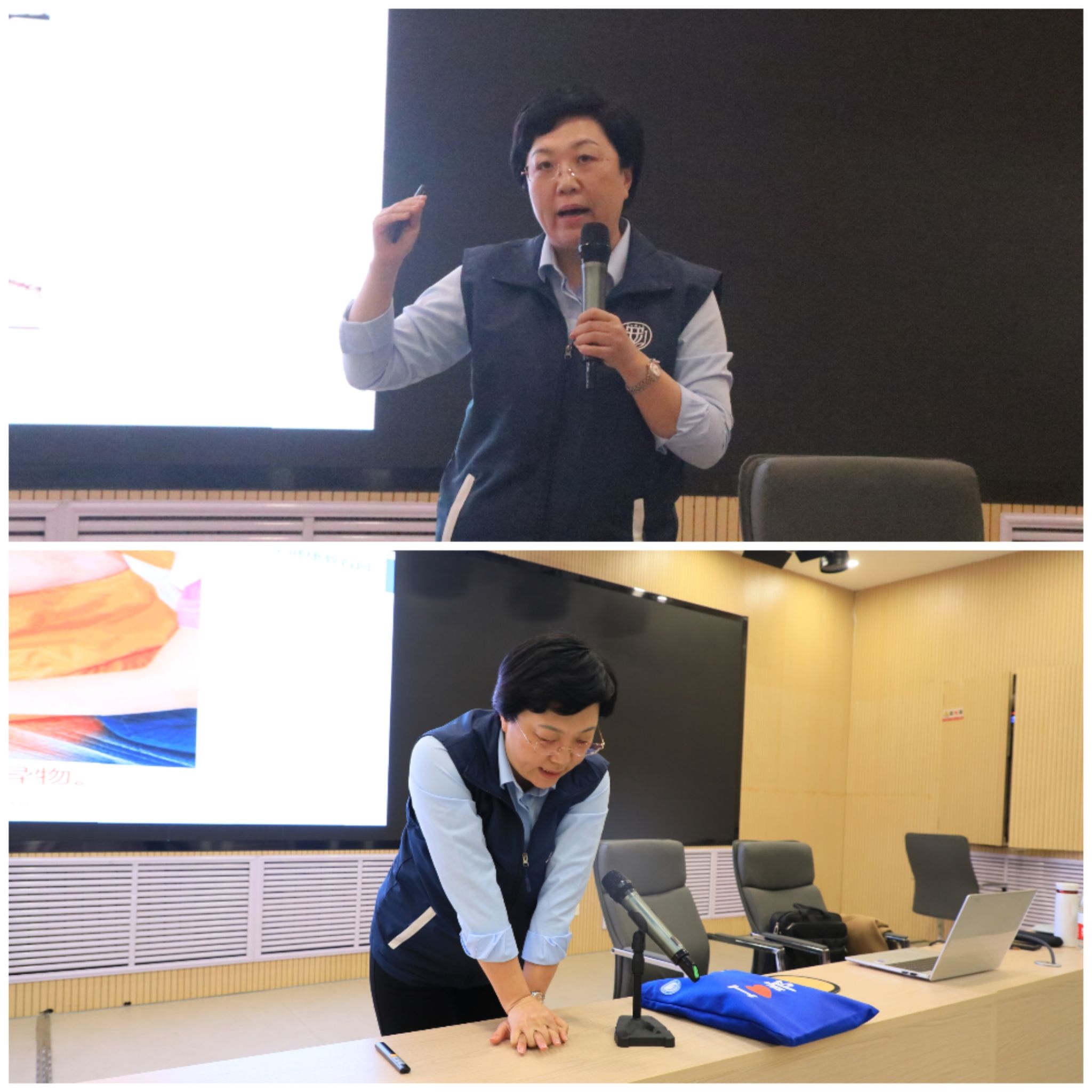 谢琳主任聚焦实用技能与季节健康要点,让健康知识“听得懂、用得上”。围绕突发公共卫生事件应急处理和心脑血管疾病的危害及预防开展有针对性地讲解。在突发公共卫生事件应急处理环节,她结合现实生活案例,手把手拆解CPR心肺复苏的按压位置、力度与频率,细致演示海姆立克急救法的操作步骤,还针对ARD(急性呼吸窘迫综合征)的早期识别与应对方法进行重点讲解,帮助教职工快速掌握紧急时刻的“救命技能”。针对秋冬季心脑血管疾病高发的特点,结合心脑血管疾病的现状,围绕心脑血管疾病的主要危害因素和新关注危害因素展开科普,重点突出“三高”“四高”(高血压、高血糖、高血脂、高尿酸)的日常监测与饮食、运动调理,以及脑卒中的“早期识别信号”等方面科普知识,用通俗的语言破除健康误区,为教职工量身定制秋冬健康管理方案。
