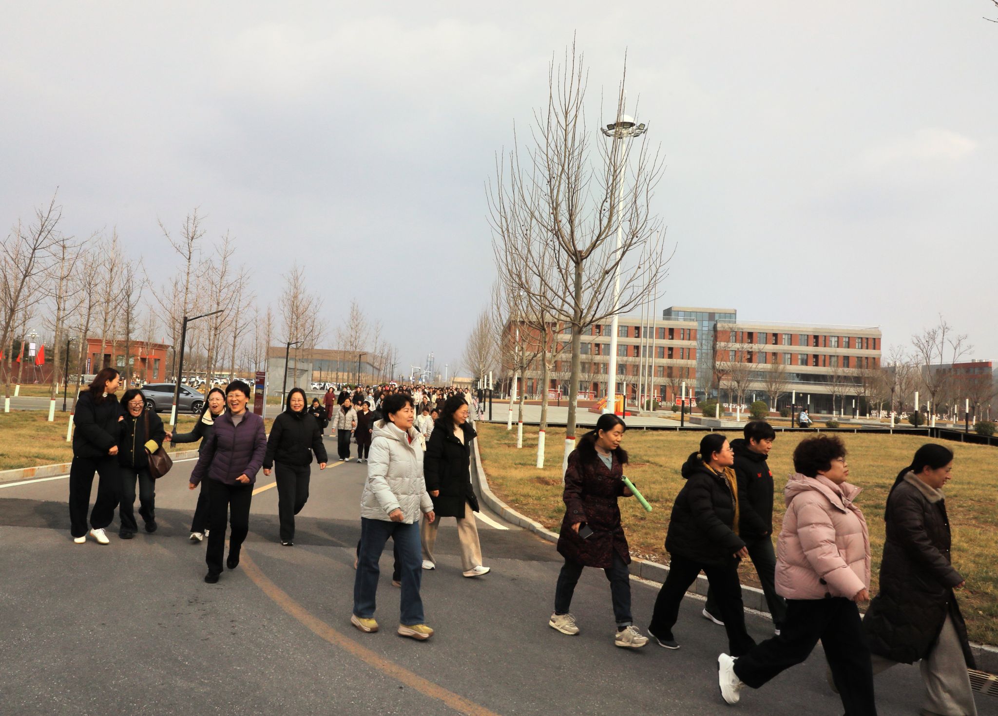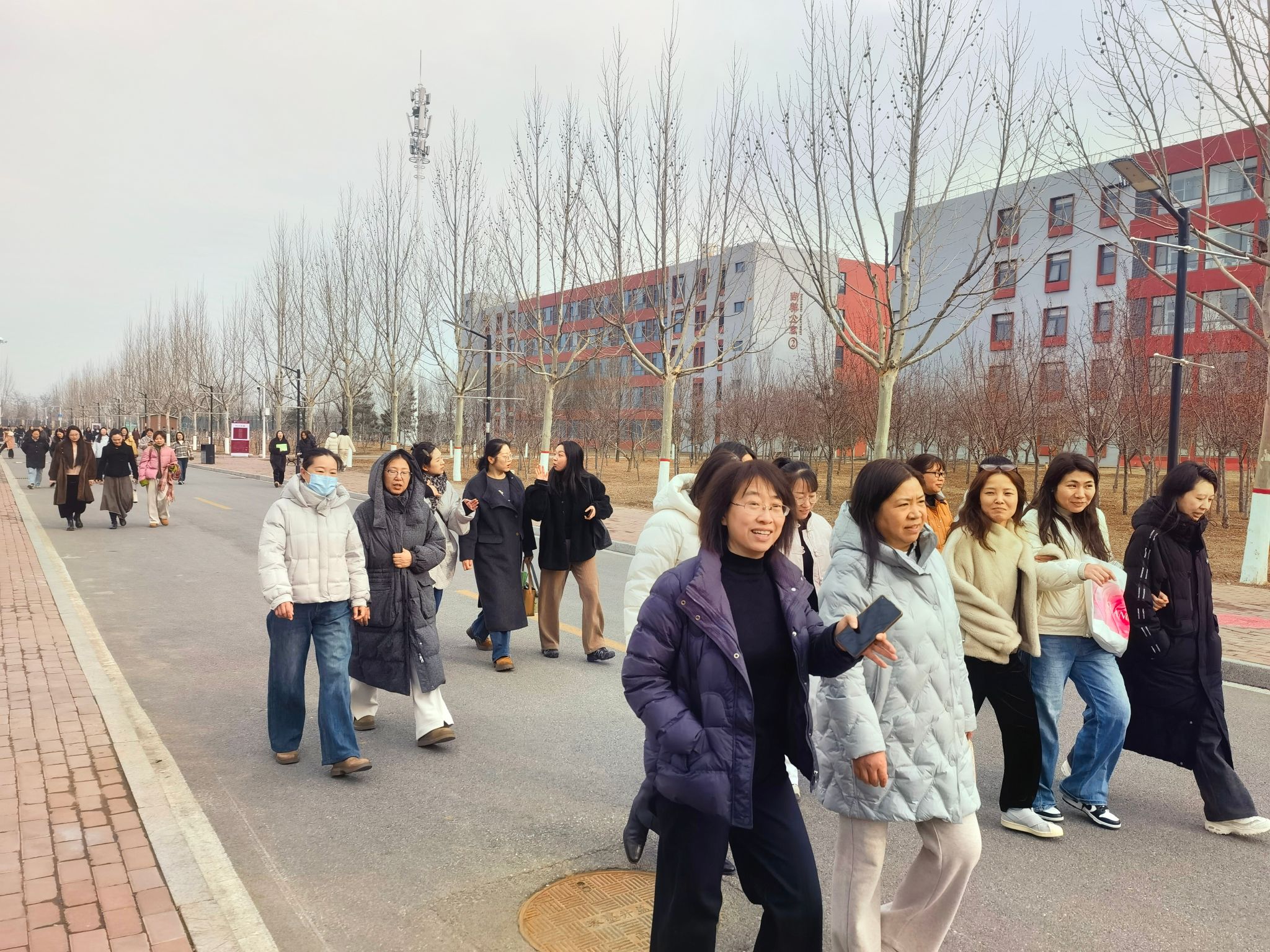 随着出发的号令响起,在党委委员秦艳梅的带领下,在学校工会主席苗运岭和工会工作人员的有序组织下,女教职工们正式开启这场春日的健康之旅。她们结伴而行,沿着精心规划的校园健步走路阔步向前。路线途径学校主教学楼、图书馆、学生宿舍楼、教工宿舍楼、体育场等校园地标,一路春光相伴,美景随行。行走途中,大家沐浴着和煦的春风,呼吸着清新的空气,一边欣赏着早春校园的如画景致,一边畅谈工作生活中的趣事与感悟,欢声笑语回荡在校园的各个角落。队伍中,既有深耕教坛多年的资深教师,也有朝气蓬勃的青年教师,大家或快步前行,或缓步闲谈,相互鼓励、彼此陪伴,在步履间舒展身心,释放工作的压力,在交流中增进同事间的情谊,成为春日校园里一道靓丽的风景线。