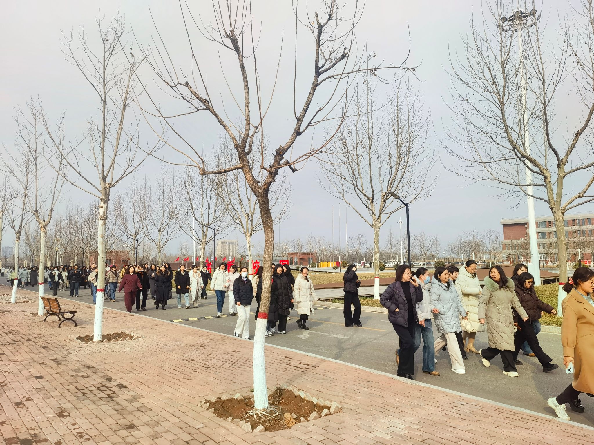 三月春风暖邯城,巾帼芳华绽校园。为庆祝第116个“三八”国际劳动妇女节,丰富女教职工精神文化生活,倡导健康绿色的生活理念,进一步增强学校教职工的凝聚力与向心力,邯郸幼专工会于3月6日下午3时30分组织全体女教职工,在恩元楼前国旗下整齐集结,开展校园春日健步走活动。女教职工们走出办公室,走进春光里,以矫健的步伐、昂扬的姿态,在美丽的校园中赴一场春日之约,共度专属于自己的美好节日。